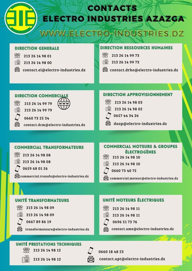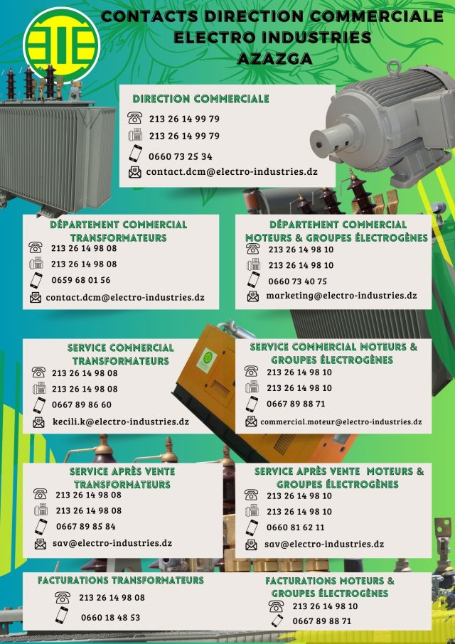 ELECTRO INDUSTRIES leader de la production de transformateurs et de moteurs en ALGERIE.